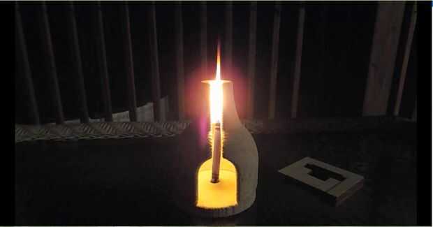 4.) poner ahora la chimenea en el soporte para que la llama vaya bonito y grande y recto hacia fuera la parte superior de la chimenea sin miedo el viento soplar hacia fuera.