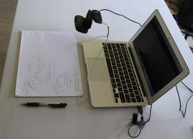 Temas como ciencia y las matemáticas tienden a usar diagramas y notaciones extrañas mucho. Una forma de enseñanza o aprendizaje a estos temas de forma remota es a través de una sesión de Skype donde cada participante puede ver lo que la otra es escribir o dibujar. La idea es colocar una webcam en su cojín de escritura, y una forma de hacerlo es con un simple soporte de hecho de una percha de alambre.
