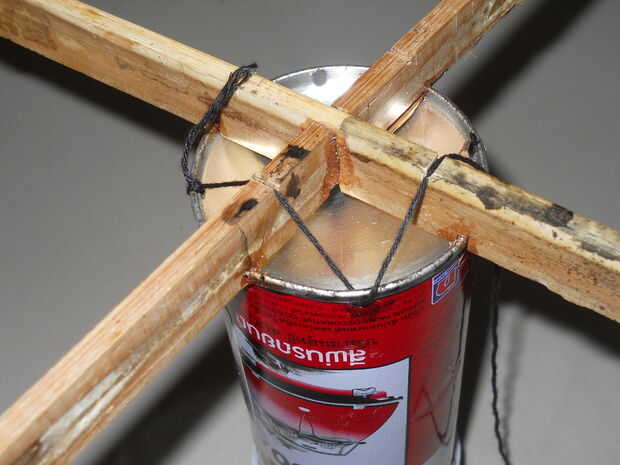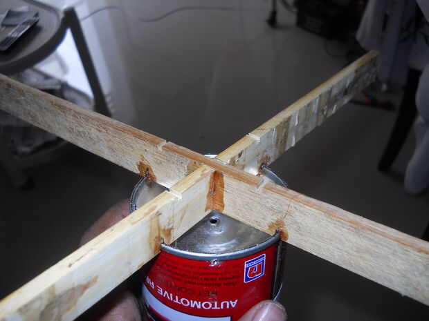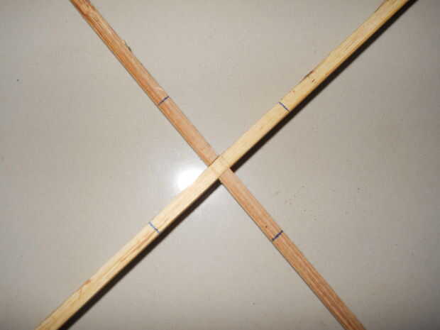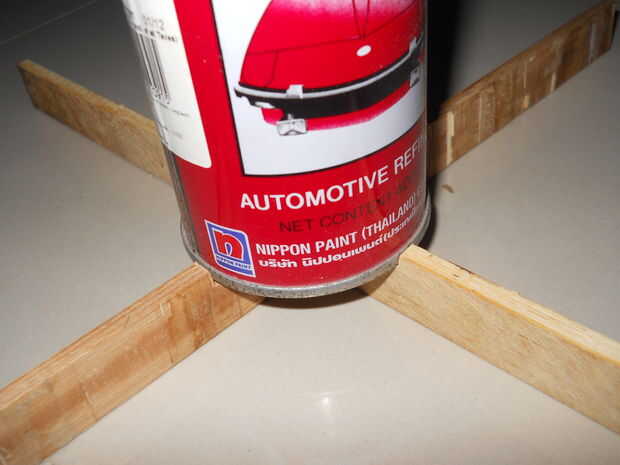 3. Mantenga los palillos en la lata de spray y luego marcar para los cortes como se indica.