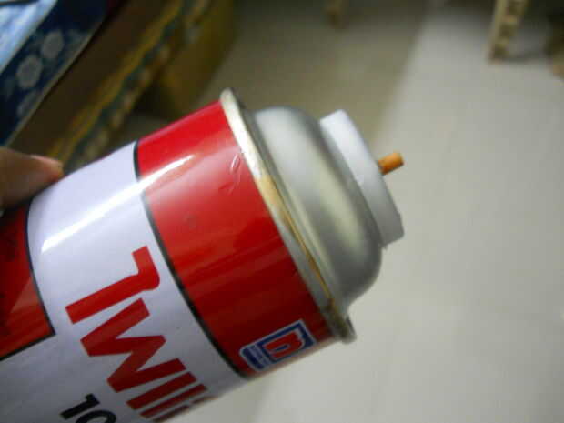 1. la tapa del spray puede se sienta apretado en la parte inferior de otra lata de aerosol.