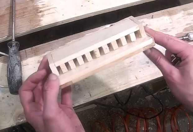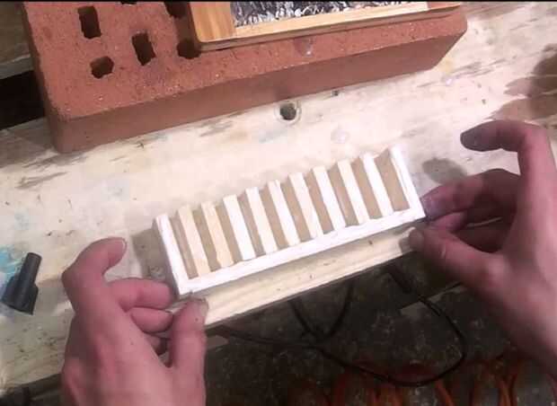 Ahora hacen un pequeño estante para los grifos o pedacitos. Asegúrese de que la estructura es un poco más corta o parte de la misma longitud que el arte decorativo que usted acaba de hacer.