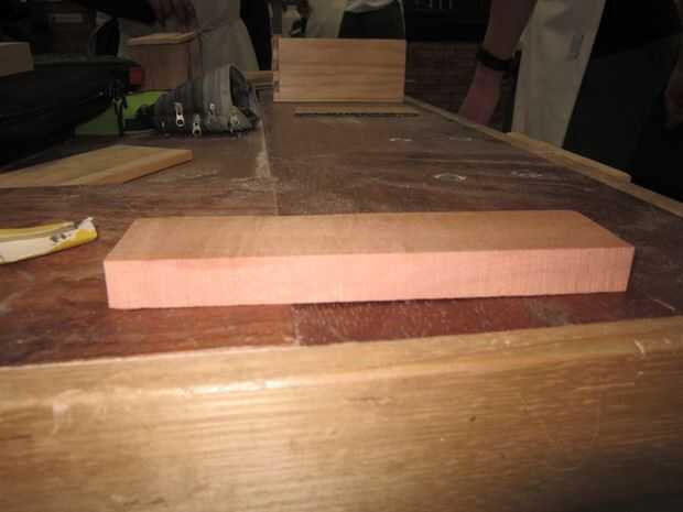 Utilizando una madera oscura como un jarrah, cortada a una longitud de 120 m m, una anchura de 50mm y una altura de 19 mm. asegurarán de que utilizar la escuadra para que los bordes son cuadrados.