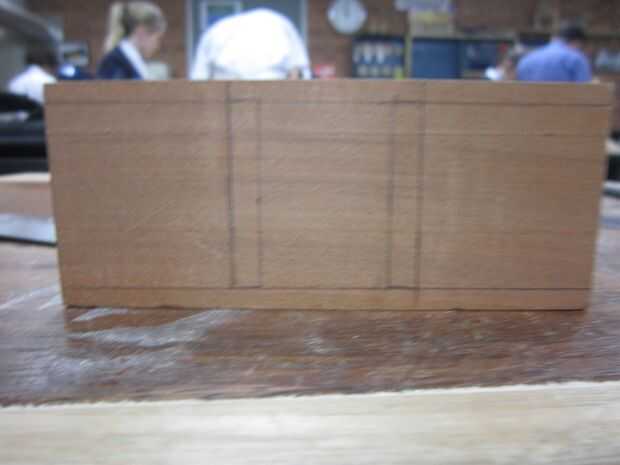 De 40mm del borde en la parte superior del proyecto y de 5 mm uno del otro lado, marcar líneas ancho 6 mm y 40 mm largo.