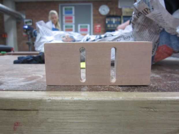 Con un pedazo de molienda gruesa de 6mm, corte las trincheras con cuidado. Antes corte, asegúrese que la madera es nivel. Si hay astillas de madera, use el papel de la arena o la lijadora de disco.