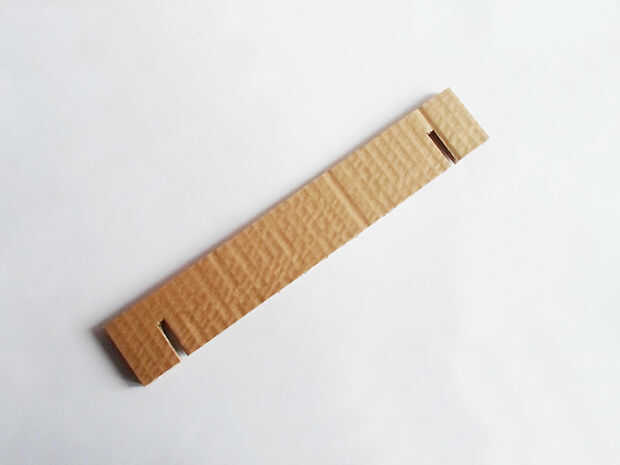 tomar la pieza rectangular más pequeña y dibujar una tira fina de 3cm (1,18 '') desde el lado corto. Esta franja debe ser tan gruesa como los otros y 3cm de altura.