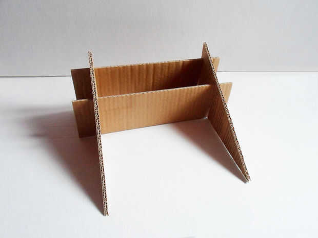 Cuando estás cortando todas de las piezas, aplicar pegamento en corte del triángulo e Inserte el 2 rectángulos grandes, colocar los triángulos de 3cm (1,18 '') de lados de los rectángulos.