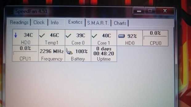 Para la aplicación para ver el temprature del componente, usé speedfan. Utiliza S.M.A.R.T. para detectar tempratures fo cada componentes vitales y le advierte si son sobrecalentamiento.