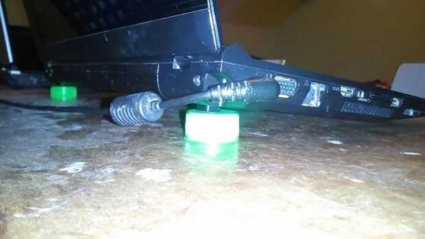 Todo lo que necesitas hacer es agregar una tapa a los 2 tacos trasera de tu laptop y eso es todo. Tu laptop es elevada por lo que permite que el aire escape fácilmente sin que ninguno de los componentes consigue demasiado caliente. puede utilizar corchos así por una mayor elevación posterior de ustedes.