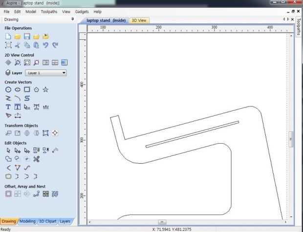 Después surgió con un diseño que me complacía con, fui a hacer el archivo de CAD 2D del mismo. Yo solía Aspire software para crear mi diseño, pero puede utilizar cualquier herramienta de gráficos de vectores disponible por ahí.