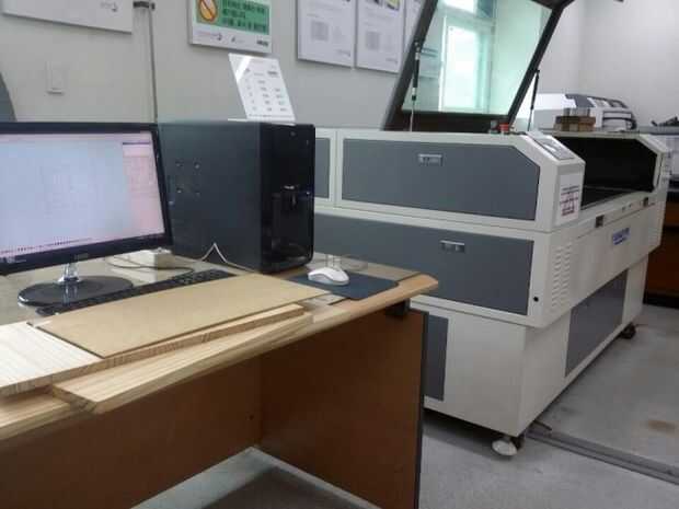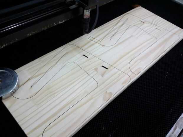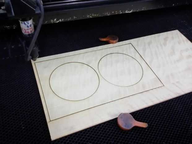 Después de eso, sólo poner la madera en el cortador del laser, había subido el DXF, había cambiado algunas configuraciones y funcionó la máquina.