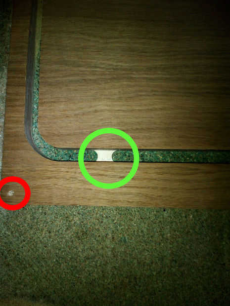 Hacer 4 agujeros pequeños en 4 esquinas con un taladro presionado con un tornillo, (el ciclo rojo)