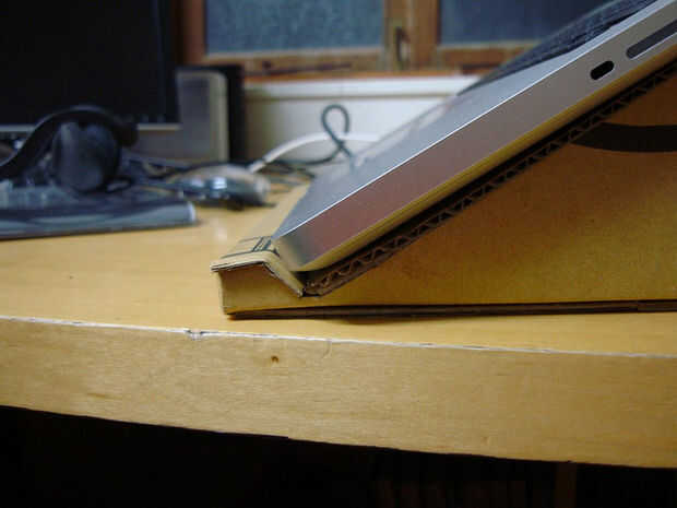 aquí es un soporte del ordenador portátil para la cama o el sofá que se puede construir en 10 minutos. Es decir, suponiendo que tiene las "partes".Mi quiropráctico ha me dio instrucciones para dejar de mirar hacia abajo a mi portátil mientras es