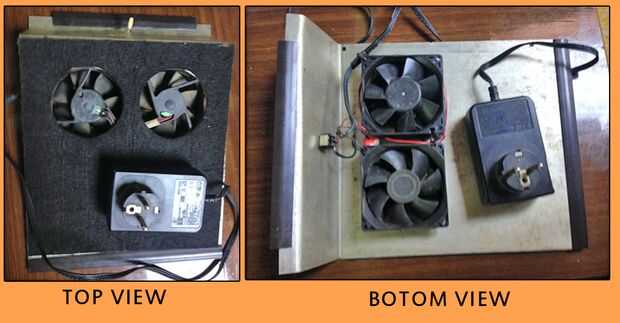 Hice mi portátil refrigeración pad después de haber medido las dimensiones de mi portátil. Con la actual configuración, es compatible con todos los ordenadores portátiles se extendió de 10 a 17 pulgadas. Los ventiladores giran al mismo tiempo y sin complicaciones. Las fotos fueron tomadas después de 3-4 meses de uso activo. Usé una imagen simbólica de un adaptador AC/DC que puede ser con la línea de alimentación UE o nosotros.