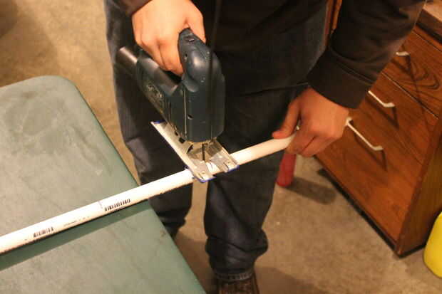 2. Con su mano derecha, corte la tubería en las ubicaciones designadas utilizando la Sierra de su elección