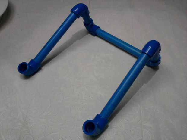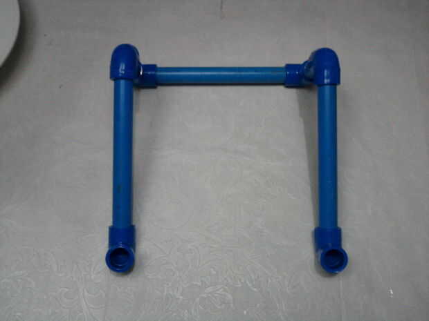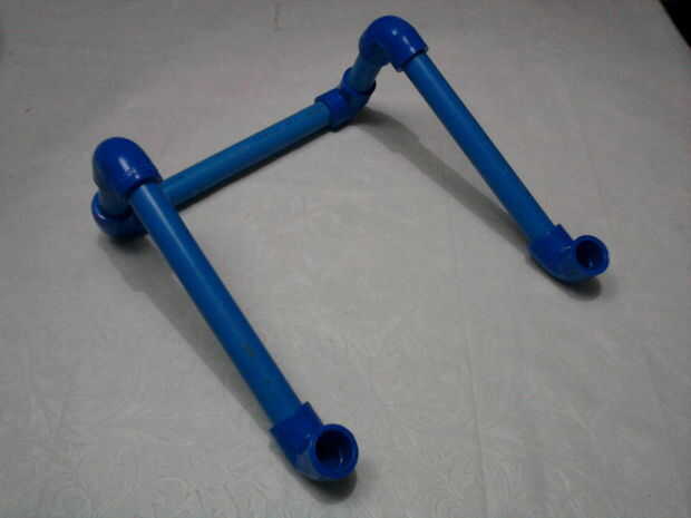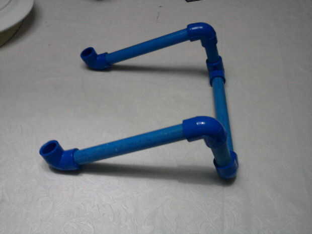 Se necesitan 6 piezas. Codo de PVC de 1/2, 2 piezas. 1/2 de tubo de PVC de 2.5 pulgadas, 3 piezas. 1/2 de tubo de PVC de 7 pulgadas.
