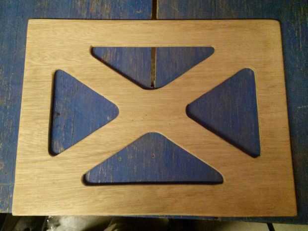 La placa (por falta de una palabra mejor) se hace de planchas finas de madera aproximadamente 1/8 de pulgada. He usado mi laptop a la medida a lo grande para cortar la pieza a lijar los bordes. a continuación, dibujar el patrón que desee en el interior taladro un agujero en la línea de ajuste de la cuchilla de su habilidad vio en. Que corte el interior forma hacia fuera y lo de la arena.