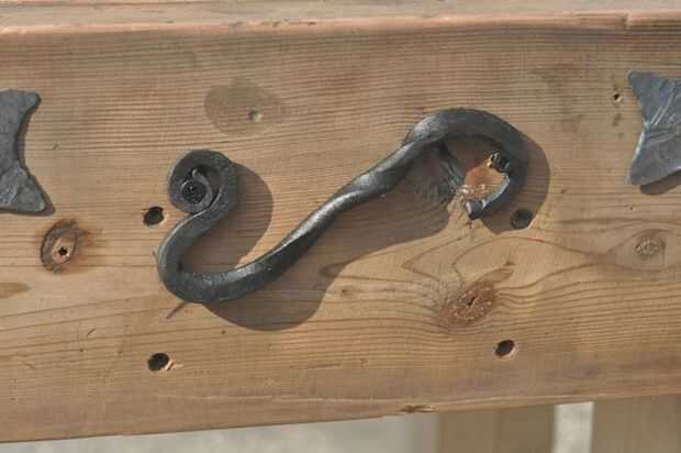 Este soporte del yunque está construido de totalmente reciclado materiales y características esquina acero forjado a mano herramientas y refuerzos titulares.