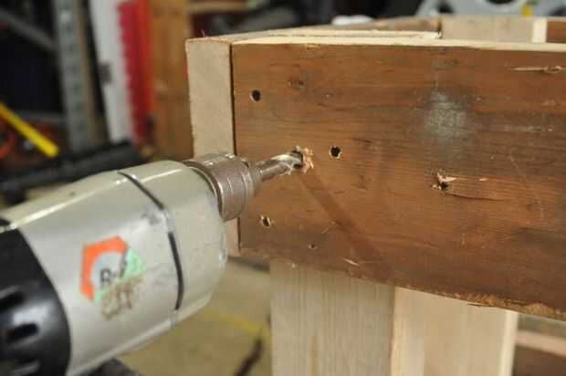 Después de eso, había perforado 1/2" agujeros en el marco de 2 x 6 y las patas de 2 x 4 doble-para arriba.