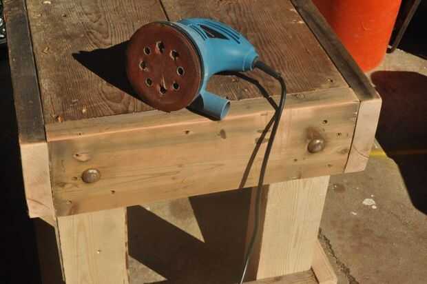 Usé una lijadora orbital con lija de agarre 120 a despegar los bordes ásperos y cualquier astillas de cortar la madera.