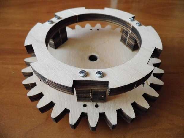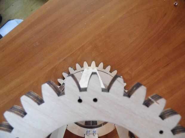 ¡ Importante! Asegúrese de que la delanteros y traseros engranajes estén alineados entre sí. Hay 5 maneras de conectarlos mal y sólo uno para hacerlo correcto. Para que sea derecho pone frontal y trasera engranajes lugar uno encima del otro para que estén alineados los dientes y orificios de 3 mm. En cada equipo hay un orificio que tiene una pequeña marca, mientras que el montaje sólo tiene que colocarlos marcados los agujeros en la misma posición.