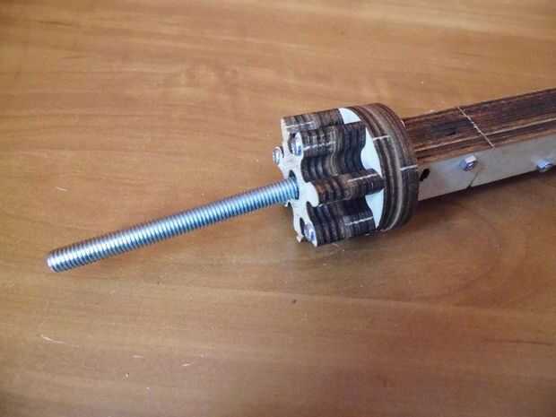 Mientras el engranaje posterior de montaje Coloque un tornillo de M8 de 90mm como en la fotografía. Termine el montaje de la perilla a la viga corta usando tornillos de 20mm M3.