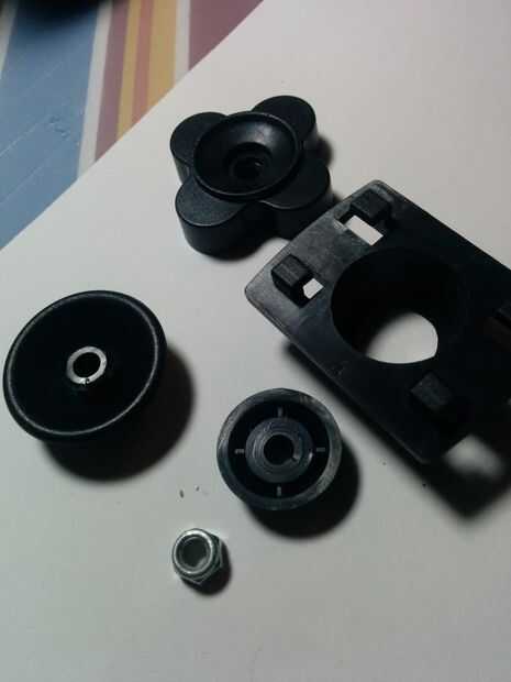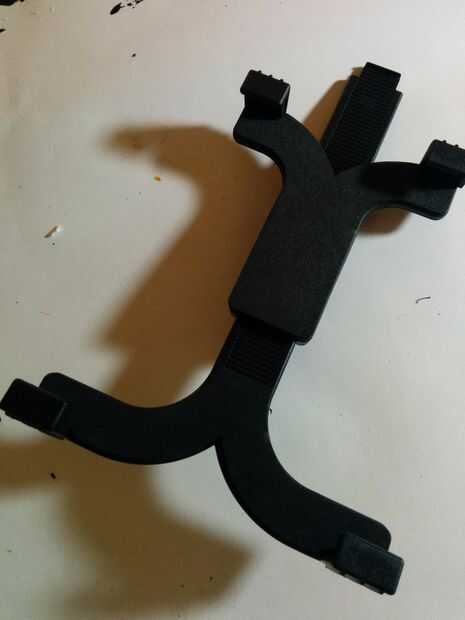Aquí, había desmontado las piezas que componen este ingeniosa abrazadera que compré de ebay. Es realmente muy prolijo como esto funciona y uno tiene que utilizar para apreciar su mecánica. Básicamente, la pieza de plástico de tipo rodamiento de bolas permiten la bisagra que sostiene el backend de la tableta para girar alrededor de su curvatura y le da flexibilidad para alinear la tableta que se asienta sobre el marco. Apretar un trozo de tornillo de la parte posterior que traba la tableta y marco juntos una vez ha sido ajustada a la posición deseada.