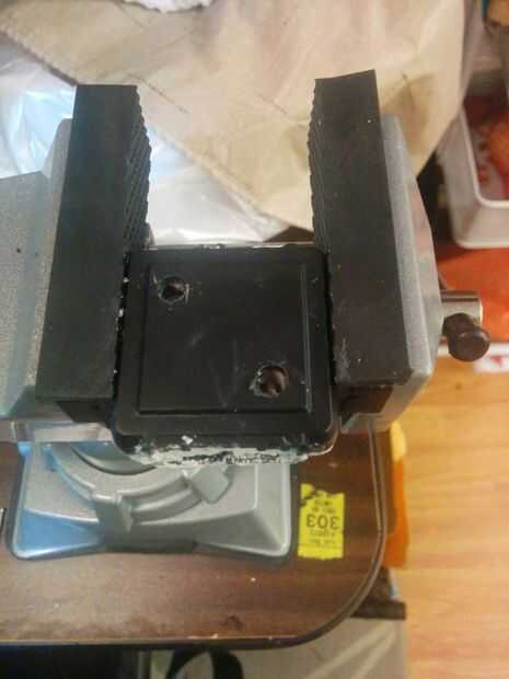 Sujeta el artilugio que originalmente había hecho antes con el fin de perforar dos tornillos en la pieza de metal de la lámpara iba a estar sentado, como se muestra. Hice dos pequeños agujeros con una broca de entonces hizo los más grandes agujeros con la broca de tamaño real para que las piezas se encajan perfectamente.