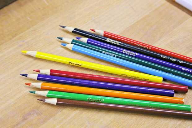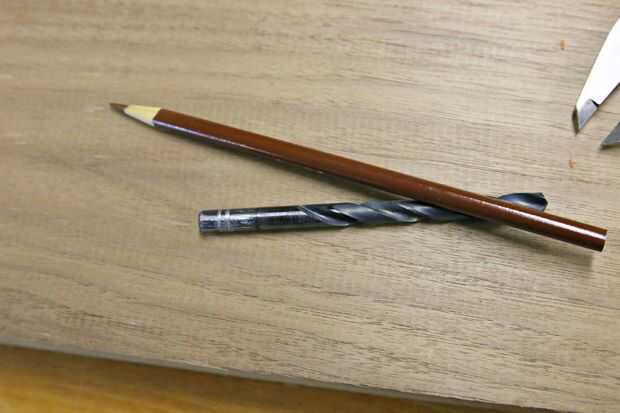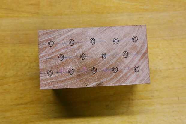 Este bloque de madera fue mucho menor que el soporte para los marcadores, que está bien, porque los lápices de colores son mucho más delgadas, pero tuve que colocar los orificios mucho más cerca uno al otro.