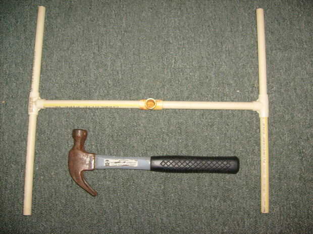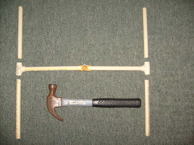 Tendrá sus cuatro restantes ocho pulgadas piezas de tubería, la sección central de la base y el martillo. Coloque las piezas y martillo de juntos.