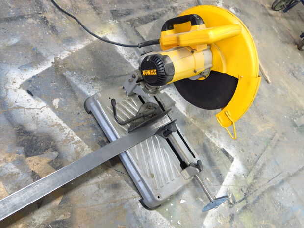 Picado dos 2 1/4" piezas de hierro de ángulo y alisar los bordes. Entonces yo cortar cinco piezas de 2" plana de la barra; dos para el interior de la caja, dos para los lados y un pedazo más largo para ir a través de la espalda.