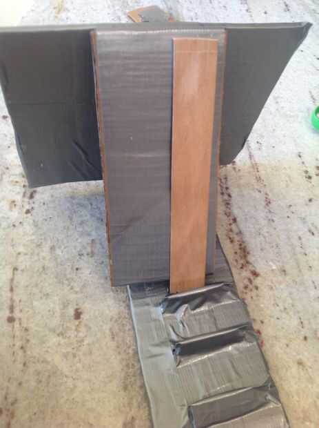 Soporte el el pedazo de 6 pulgadas de cartón mediante la adición de un Popsicle stick y poniendo cinta sobre él
