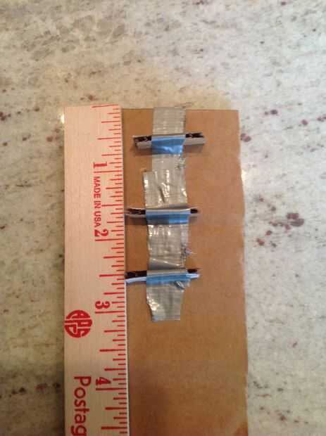 Ahora utilizar pequeños trozos de cinta para conectar las piezas largo de 1 pulgada de cartulina a pedazo las 7 pulgadas de largo y 1/2 pulgadas desde el extremo y 1 pulgada de distancia del espacio les