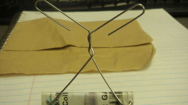 ahora girar los dos extremos de los clips de como orejas de antena de conejo sólo asegúrese de que los dos extremos en el interior se cruzan para crear apalancamiento para counterweigh el peso de los teléfonos.