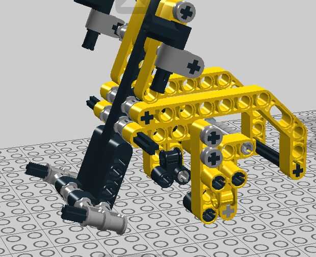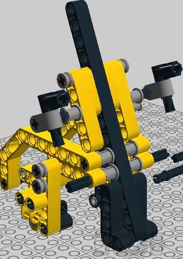 Así que una viga en forma de L y un eje de 3M y 2 conectores de 3M. Conecte el rayo en forma de L, a la viga de 15M. Entonces el otro haz en forma de L y conecte demasiado. Cruzan las vigas con 2 ejes de 5M y poner el último bush entre L-s. Ponga las 4 capturas Cruz agujeros en los extremos de los ejes. Poner 2 ejes de 3M en el retén Cruz hoyos. Y por último los elementos de 2 ángulo en los ejes.
