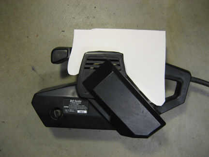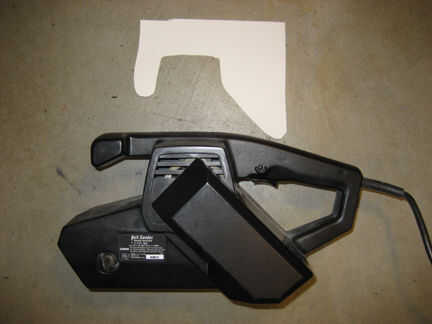 Lo primero es hacer las plantillas de cartón para los lados. Áspero hacia fuera y mantener recorte hasta que la plantilla se adapta perfectamente. Mi lijadora de banda requiere una plantilla diferente para el otro lado ya que el recinto diferenció a cada lado. Dejar un margen extra de la columna vertical de 2 x 2. En la parte superior verá que dejó espacio para un tornillo que se aseguran ambos lados juntos.