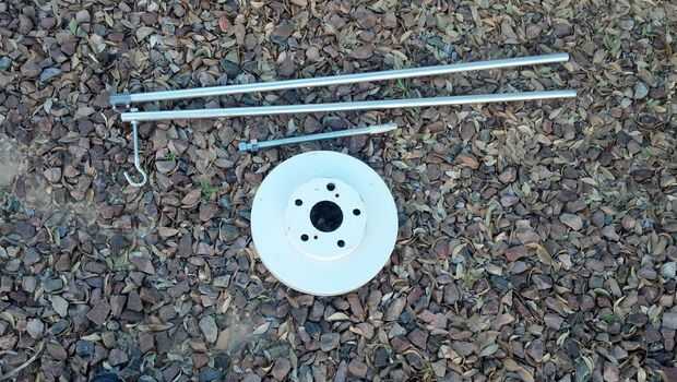 Es el momento ahora de montar el soporte de la linterna. Conectar las dos piezas de tubo y deslice sobre el freno de disco. Después simplemente se cuelgue la linterna en el gancho! Ahora debería tener un soporte de linterna portátil que se puede contraer hasta un tamaño pequeño para acampar!