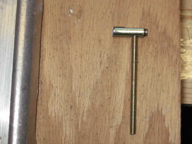 Puede utilizar un par de pinzas para sostener la pieza, sin embargo tomé ventaja de la anatomía de mi pieza de trabajo para su control. Atornilla una varilla roscada en el agujero en mi pieza de trabajo. Esto me dio una manija para manipular la pieza y mantener mis manos de quemarse como el metal calentado por fricción.