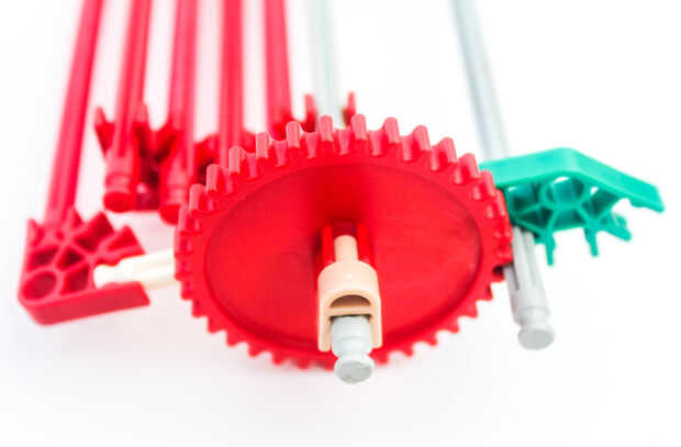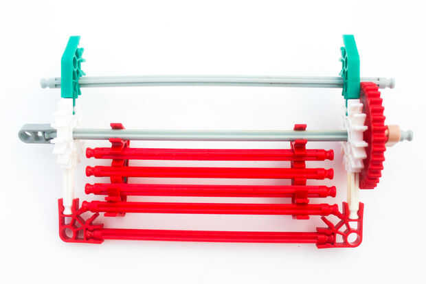 La plataforma tiene la base del teléfono / tablet y también proporciona el punto de giro. Esta parte lleva también más estrés por el peso del teléfono / tablet. Las muescas de engranaje encajan muy bien en el punto final de la barra gris y asegura que el conector del eje de la rueda del engranaje mantiene la posición de la base. El ángulo de la base se puede ajustar girando el engranaje para que se trabe en la posición deseada.