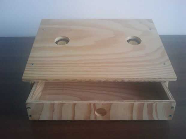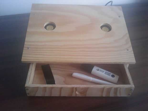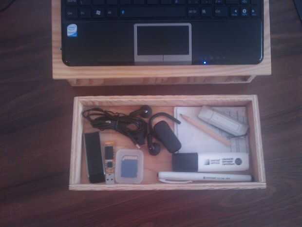 Este soporte del ordenador portátil está hecho completamente de cartón y cuenta con un útil organizador que obtiene ocultos una vez que el portátil se coloca en la parte superior. Es perfecto para guardar todos los cables y esas cosas que usted puede