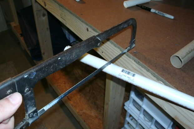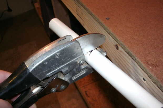 En este paso usted cortará a la longitud (3) piezas de 6 pulgadas y 4 trozos de 4 pulgadas. Estos cortadores de tubería de PVC vienen en prácticos real y trinquete hacia abajo, cortar iterativamente a través del tubo dejando un borde limpio. Otra opción es la sierra para metales o incluso una sierra sable.