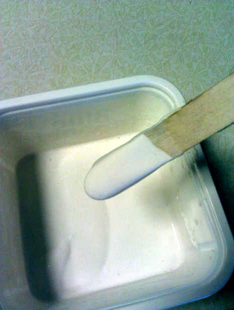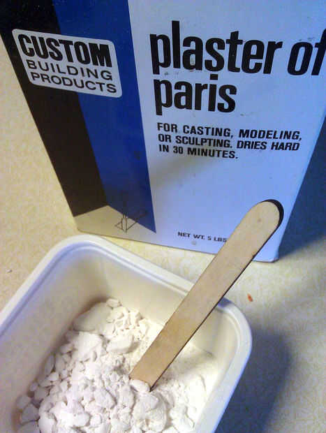 Averiguar cuánto usted tendrá que llenar su recipiente de plástico a una profundidad de 1/2 a 1 pulgada de yeso. Usted puede medir y mezclar el yeso en la bañera si quieres; no hay punto en ensuciar a otro recipiente. Añadir suficiente agua, un poco a la vez, para obtener todo el yeso seco, revuelto y tiene una consistencia un poco más delgada que la pasta de dientes. Que desea sólo lo suficientemente líquida como para que se aplanan hacia fuera cuando se establece sobre una superficie plana. Revolver bien, toque el molde sobre la mesa un par de veces para obtener las burbujas grandes hacia fuera, luego déjela sentarse sobre esa superficie plana durante la noche.