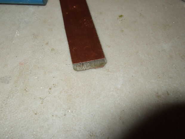 Primero biselar los bordes. Esto es para ayudar en el soporte de la batería. Verás al final. Usando papel de lija grueso, bisel una parte en cada extremo de la tabla y redondear ligeramente las esquinas.