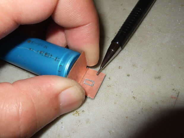 Tenga cuidado de mantener el cordón de soldadura de splotching a través de la línea de grabado, antes.