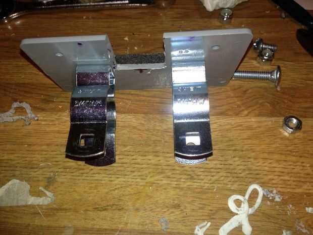 Luego poner la placa en las abrazaderas y alinee la placa de borde inferior con los agujeros de las abrazaderas. Centro de la placa de la abrazadera del vástago. Podría conseguir todo measurey y de la materia, pero sólo usé mi marca que mejor ojos ("mejorado" porque llevo gafas.)