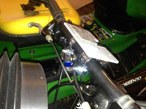 Fije las abrazaderas del manillar, dejándolas un poco flojas. Esto es así puede sentarse en la silla de montar y ajustar el ángulo del teléfono para su placer de la visión. Después de que tienes el derecho de ángulo, apriete las tuercas de las abrazaderas.