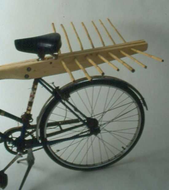 Usaba una velocidad 3, eje de engranaje, bicicleta para niñas, pero probablemente podría adaptar el diseño simple para trabajar con cualquier bicicleta. El resultado final es bastante goofy mirando pero muy eficaz en el transporte de personas y carga. Se puede encontrar una bici como esta por $15 en buena voluntad y debe planear gastar $10 en los pernos y la madera.