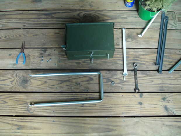 -Soporte de desecho de metal (que utiliza el soporte para un estante pero podría usar algo más, incluso un trozo de conducto eléctrico doblado)