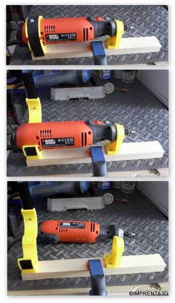 Algunas veces necesito usar mi herramienta giratoria fija a una mesa para hacer cortes, lijado y otras operaciones fácilmente, así que diseñado e impreso algunas partes para arreglar mi máquina.
