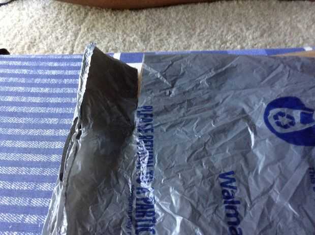 Después de cortar la bolsa haga la bolsa plana así que usted puede cortar la etiqueta de la bolsa (por lo que será una bolsa rectangular)