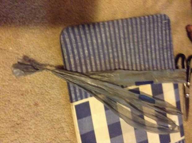 Con la plancha a baja temperatura cubrir la zona media manija entre nudos con papel de aluminio y hacer un par de pasadas sobre el papel de aluminio. Tenga cuidado de no tocar el plástico sin protección con el hierro.